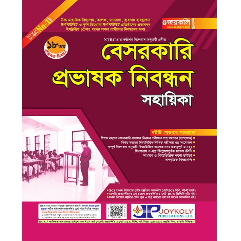 গুণগত বৈশিষ্ট্যNTRCA'র সর্বশেষ সিলেবাস ও MCQ পরীক্ষা পদ্ধতির পর্যালোচনায় রচিত। প্রলিমিনারি পরীক্ষার প্রশ্নের ব্যাখ্যাসহ সমাধান ও বিষয়ভিত্তিক লিখিত পরীক্ষার প্রশ্নাবলি। অধ্যায়ভিত্তিক বিগত প্রশ্নের পাশাপাশি গুরুত্বপূর্ণ MCQ & Self Test.  Confusing প্রশ্নের Note প্রদান এবং অধ্যায়ভিত্তিক বিষয়াবলি তথ্যাকারে উপস্থাপন। সর্বশেষ সিলেবাস ও বিগত প্রশ্ন বিশ্লেষণপূর্বক-৫০ সেট MCQ মডেল টেস্ট। সাধারণ ও বিষয়ভিত্তিক নমুনা ভাইভা সংযোজন। বাংলাদেশ ও বিশ্বের সাম্প্রতিক বিষয়াবলির ছক, চার্ট ও তথ্য।